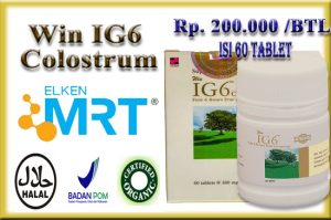 Elken Win IG6 Colostrum merupakan produk Colostrum yang terbuat dari susu sapi yang merupakan susu kolostrum yang dikumpulkan dalam waktu 6 jam pertama setelah sapi melahirkan anak sapi yang biasanya disebut ASI, yang bermanfaat untuk Faktor Kekebalan (Immunoglobulin Factor), Faktor Pertumbuhan (Growth Factor), dan inhibitor dalam susu peralihan menurun dan laktosa bertambah secara berangsur-angsur setelah enam jam.