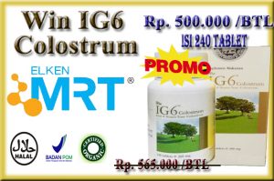 Elken Win IG6 Colostrum merupakan produk Colostrum yang terbuat dari susu sapi yang merupakan susu kolostrum yang dikumpulkan dalam waktu 6 jam pertama setelah sapi melahirkan anak sapi yang biasanya disebut ASI, yang bermanfaat untuk Faktor Kekebalan (Immunoglobulin Factor), Faktor Pertumbuhan (Growth Factor), dan inhibitor dalam susu peralihan menurun dan laktosa bertambah secara berangsur-angsur setelah enam jam.